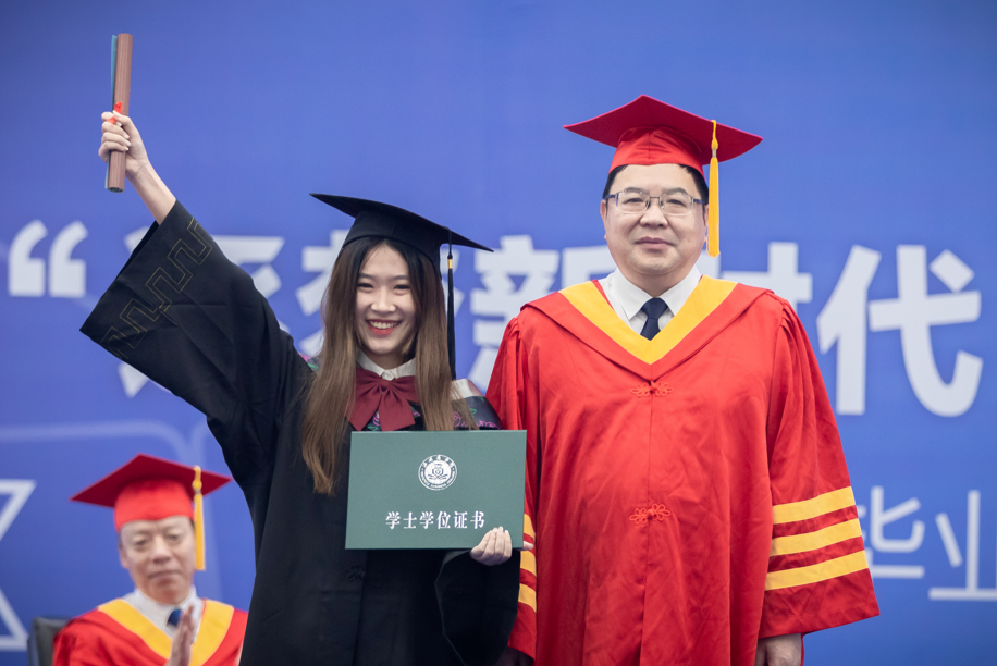 毕业典礼上,执行校长、党委书记周湘浙为2022届毕业生代表颁发毕业证书、送祝福卷轴,并为获得学士学位的同学拨穗。校领导为137位“浙江省优秀毕业生”、国际留学优秀毕业生代表、国内考研以及优秀创业毕业生颁发荣誉证书。