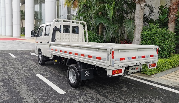 为了打造更强承载能力,祥菱1.5T产品车架采用宝钢B610L高强度材质,重点部位采用双层钢板加强,纵梁高140毫米,承载力更强。车辆采用2.5吨加强型铸造后桥以及免维护三级渐变刚度板簧技术,既保证空载舒适性,又可满足重载需求。此外,车辆采用185R14轮胎后双胎设计,打造更强承载力同时也大大提升了行驶稳定性,更好的保证城市、城郊配送的货品完整度。