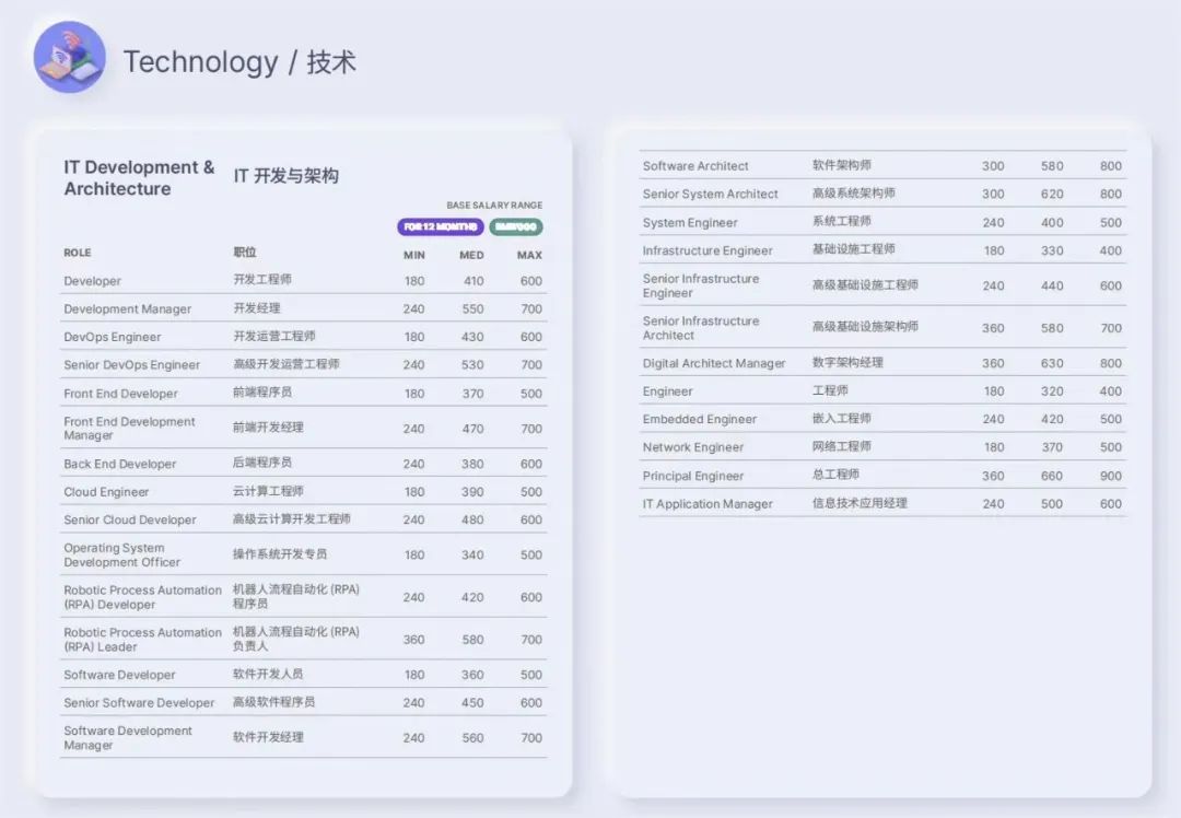 该报告中一共调研了国内 7 个行业以及 6 大城市不同职级以及不同岗位的薪资水平,以下是播妞在报告中挑选的和技术、职场等相关的内容,一起来看看: