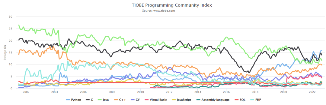 素材来源:https://www.tiobe.com/tiobe-index/,如侵删