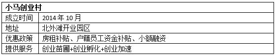 落户于北外滩开业园区的“小马创业村”是虹口区首家政企合作形式的创业服务平台。寓意“孵化良驹”的“小马创业村”是由铂泉投资咨询(上海)有限公司与虹口区人力资源和社会保障局合作,于2014年10月在北外滩开业园区成立的非营利性质的多功能创业服务组织,为虹口青年创业群体量身打造,专注于早期项目投资和风险投资及产业扶持发展。